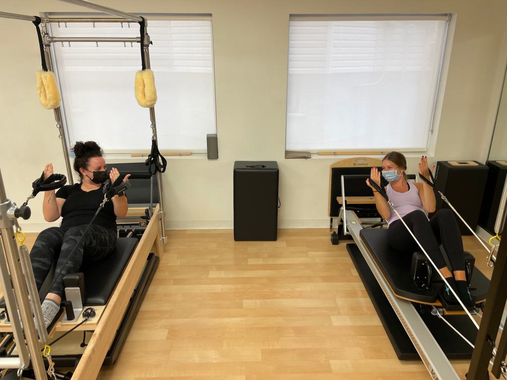 Virtual Sessions are taught over Zoom and can integrate any props you have available to you. Foam rollers, exercise balls, therabands, free weights, and more can be combined with Pilates exercises to give you the same full-body workout you would experience on the apparatus!